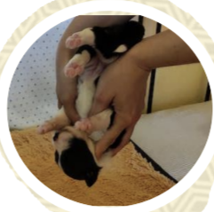 Hold the puppy on its back (supine position); this exercise can be done gradually, with a maximum duration of 2 to 5 seconds.